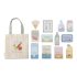 Il set include diversi prodotti alimentari.