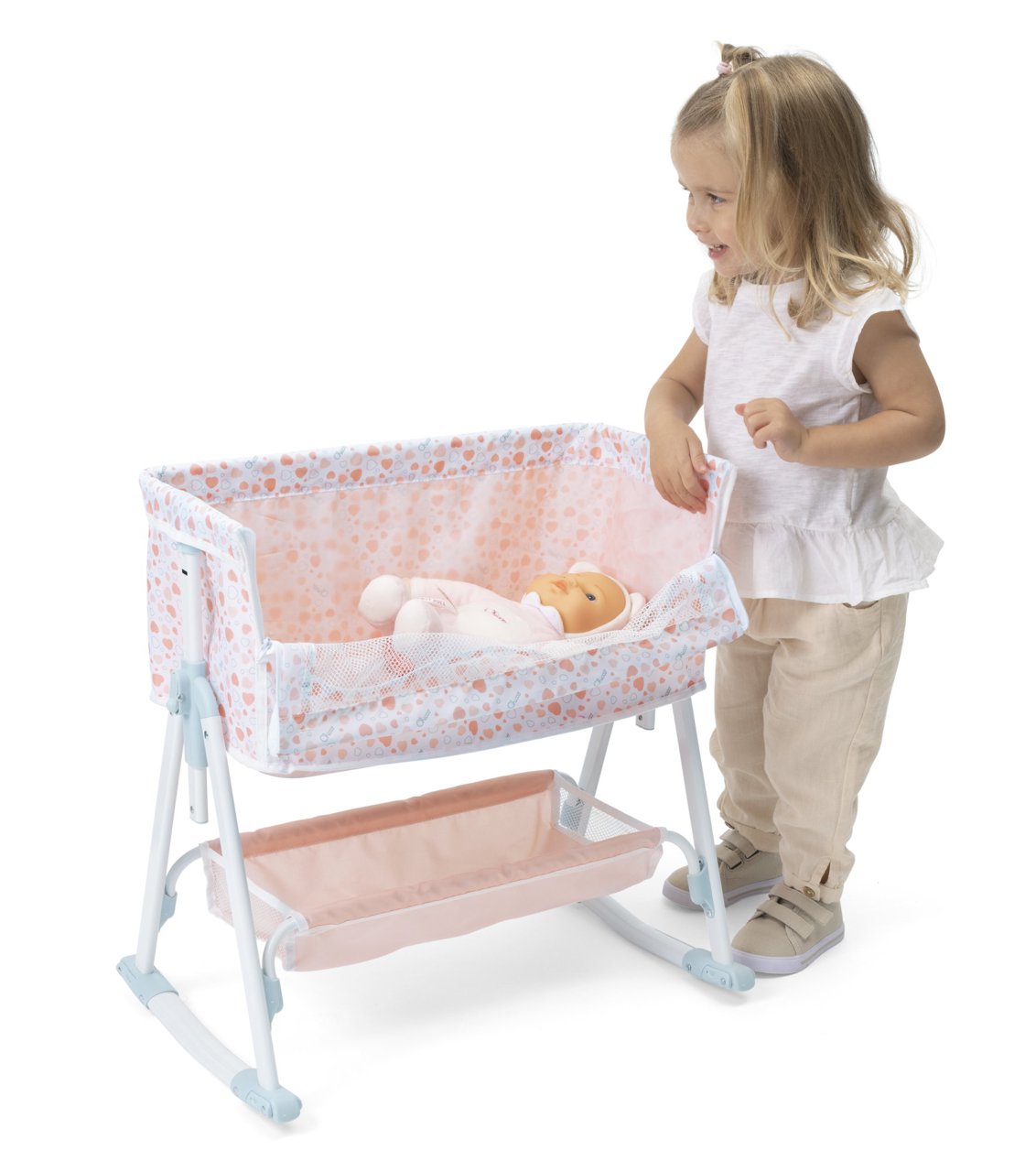 Accessorio elegante per le tue bambole, ispirato al design raffinato della linea My First Doll: la realistica culla giocattolo Next2Me aggiunge un tocco di fascino a ogni stanza dei giochi.