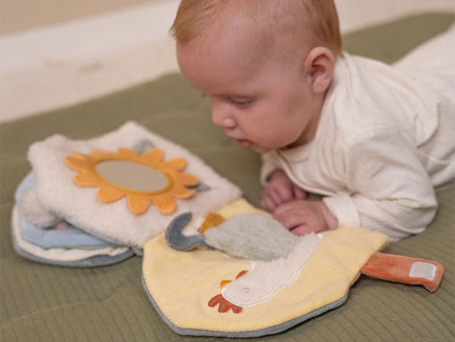 All’interno del libro troverai uno specchietto, un sonaglio, animali da fattoria e tanto altro! È super morbido al tatto, stimolando i sensi del bambino e aiutandolo a sviluppare la coordinazione occhio-mano.