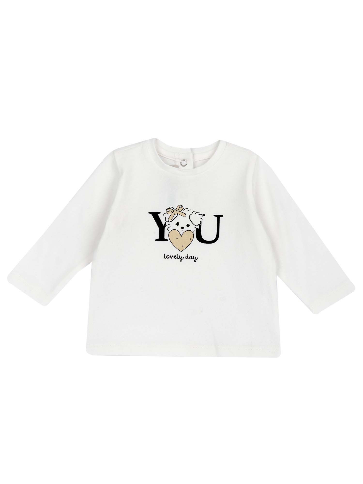 La maglia a manica lunga con stampa fa parte della nuova collezione A/I 2025 Chicco.