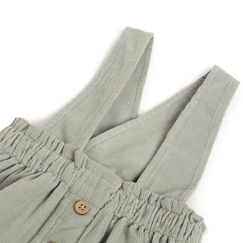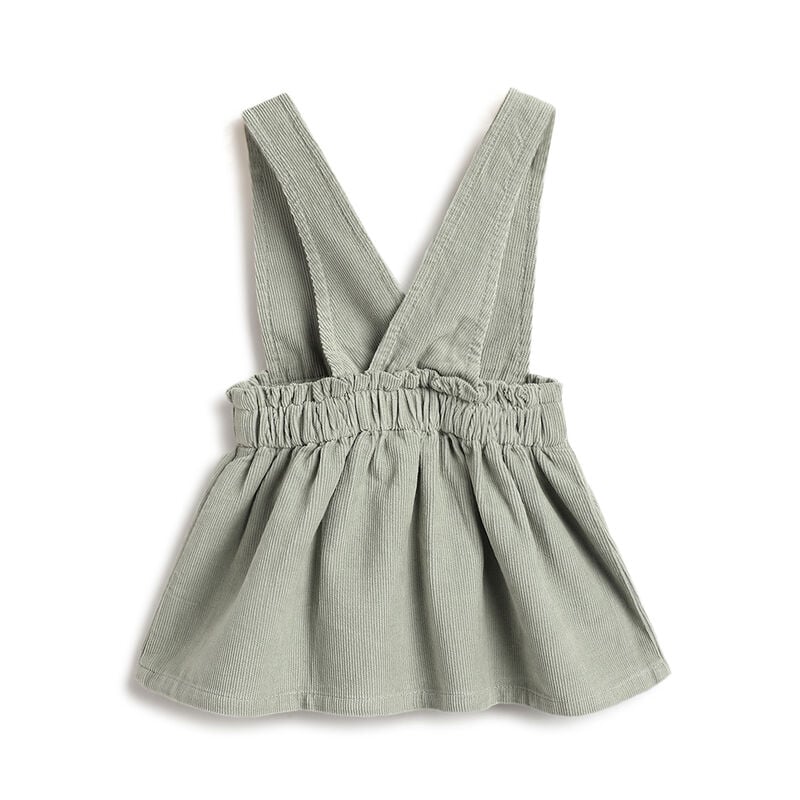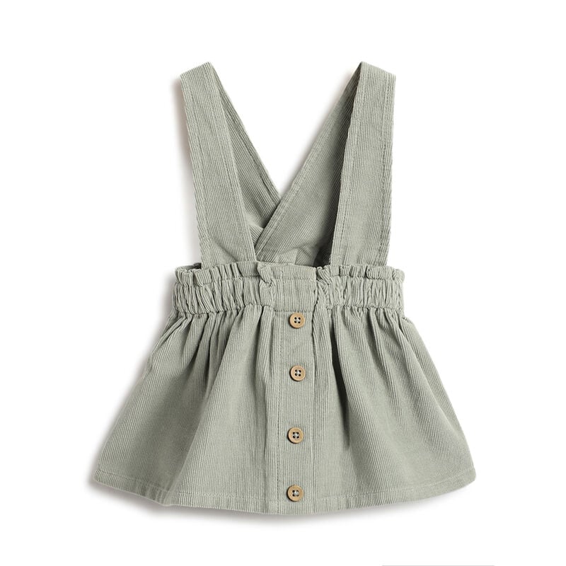 La salopette a gonna verde a coste fa parte della nuova collezione A/I 2025 Chicco.