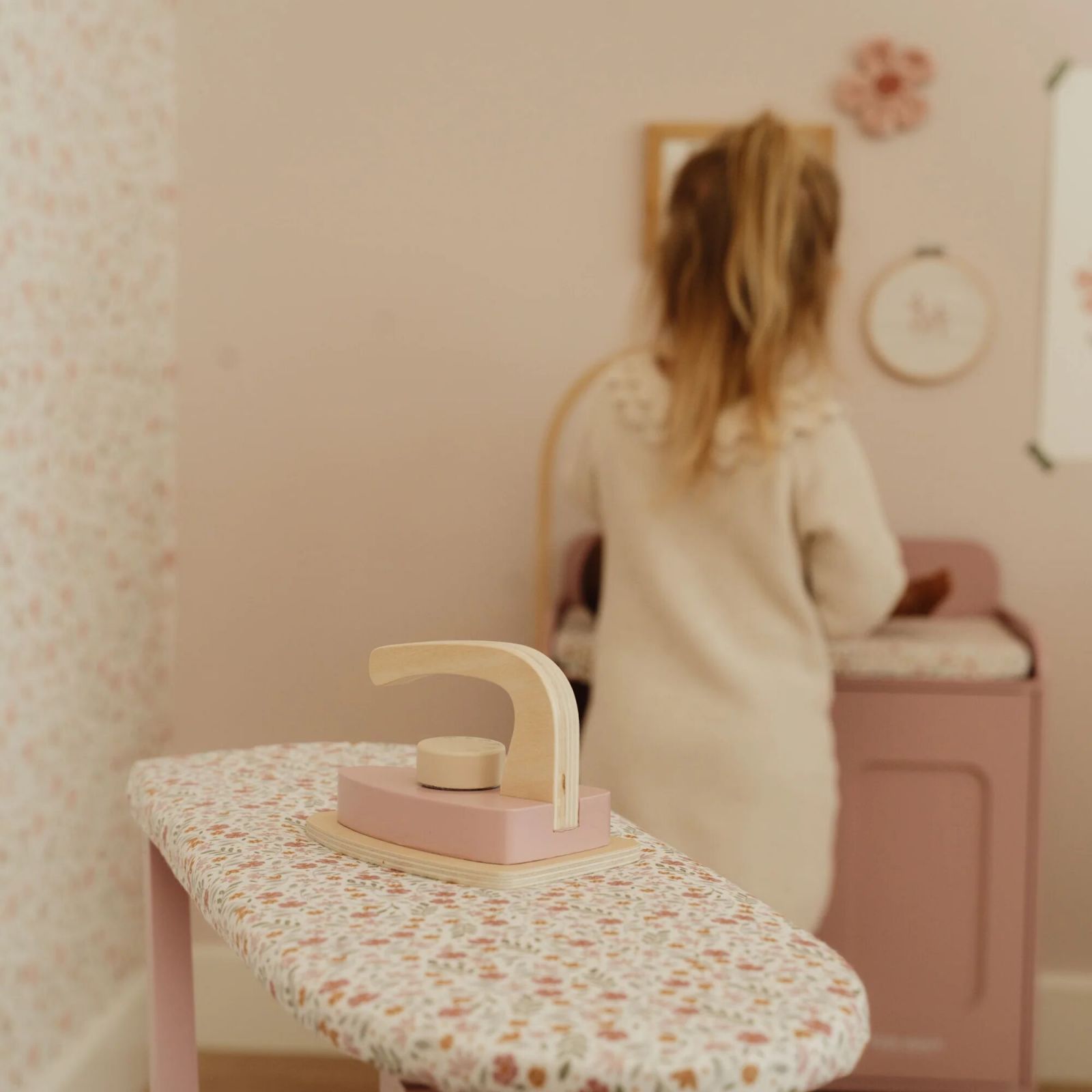 Con il set Ferro e Asse da Stiro di Little Dutch i bambini possono divertirsi a stirare i vestiti delle bambole e dei peluche, imitando le attività quotidiane degli adulti.