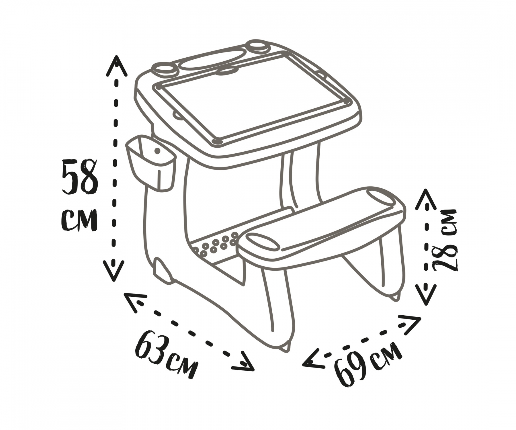 La lavagna reversibile offre due lati diversi: un lato nero per i gessetti e un lato bianco magnetico per l’uso con pennarelli cancellabili ed elementi magnetici. Il vassoio portaoggetti e la vaschetta portaoggetti mantengono tutti gli accessori necessari per le sue creazioni a portata di mano!