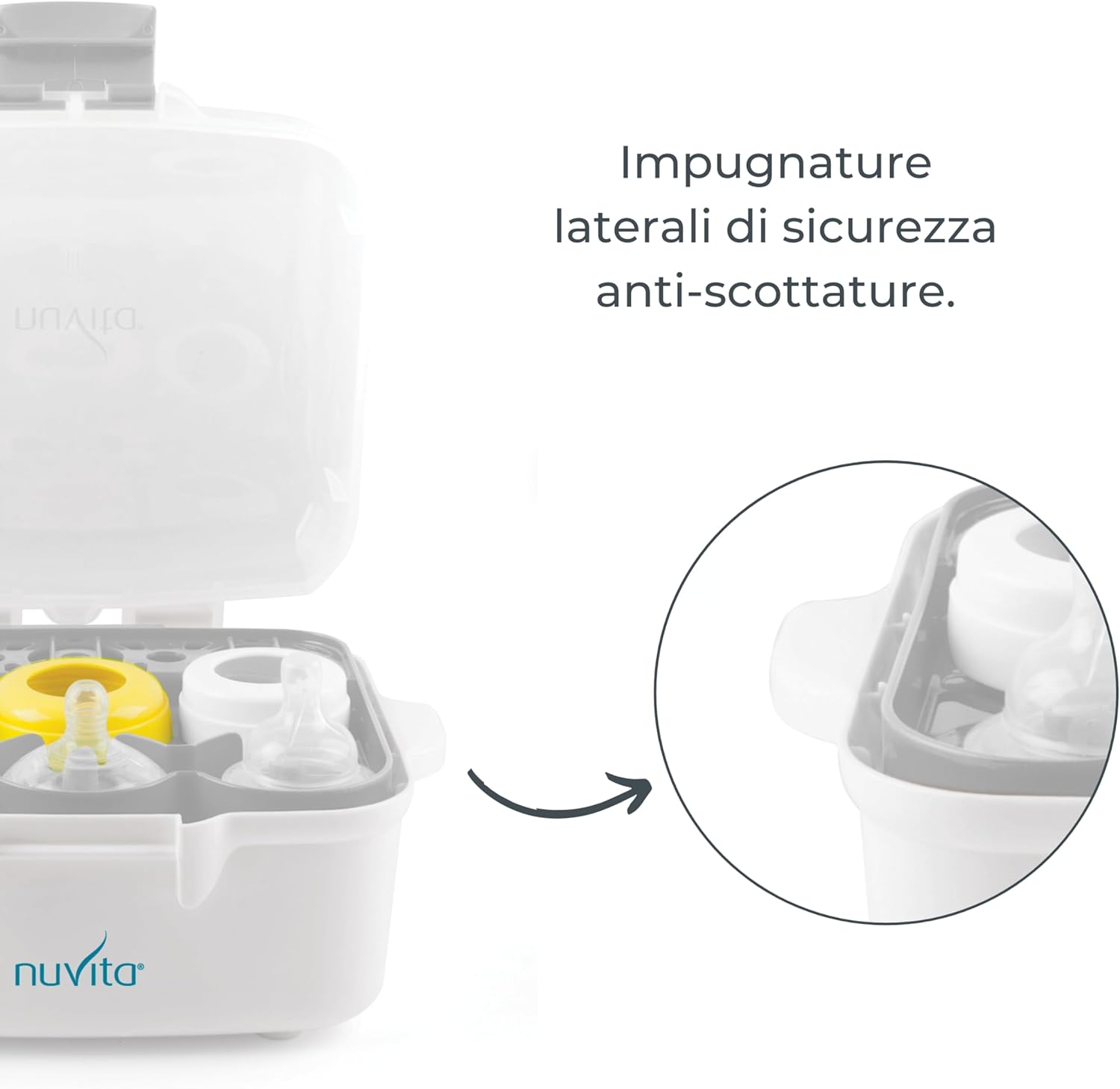 Lo Sterilizzatore Microonde Nuvita è la soluzione perfetta per i genitori che desiderano garantire una pulizia profonda e sicura degli accessori del loro bambino. Con la sua tecnologia avanzata, questo sterilizzatore è progettato per offrire una sterilizzazione rapida ed efficace, eliminando il 99,9% dei germi e batteri nocivi in soli pochi minuti. Ideale per biberon, succhietti, piccoli giocattoli e altro ancora, lo Sterilizzatore Microonde Nuvita è l’accessorio indispensabile per mantenere l’ambiente del tuo bambino pulito e sicuro.