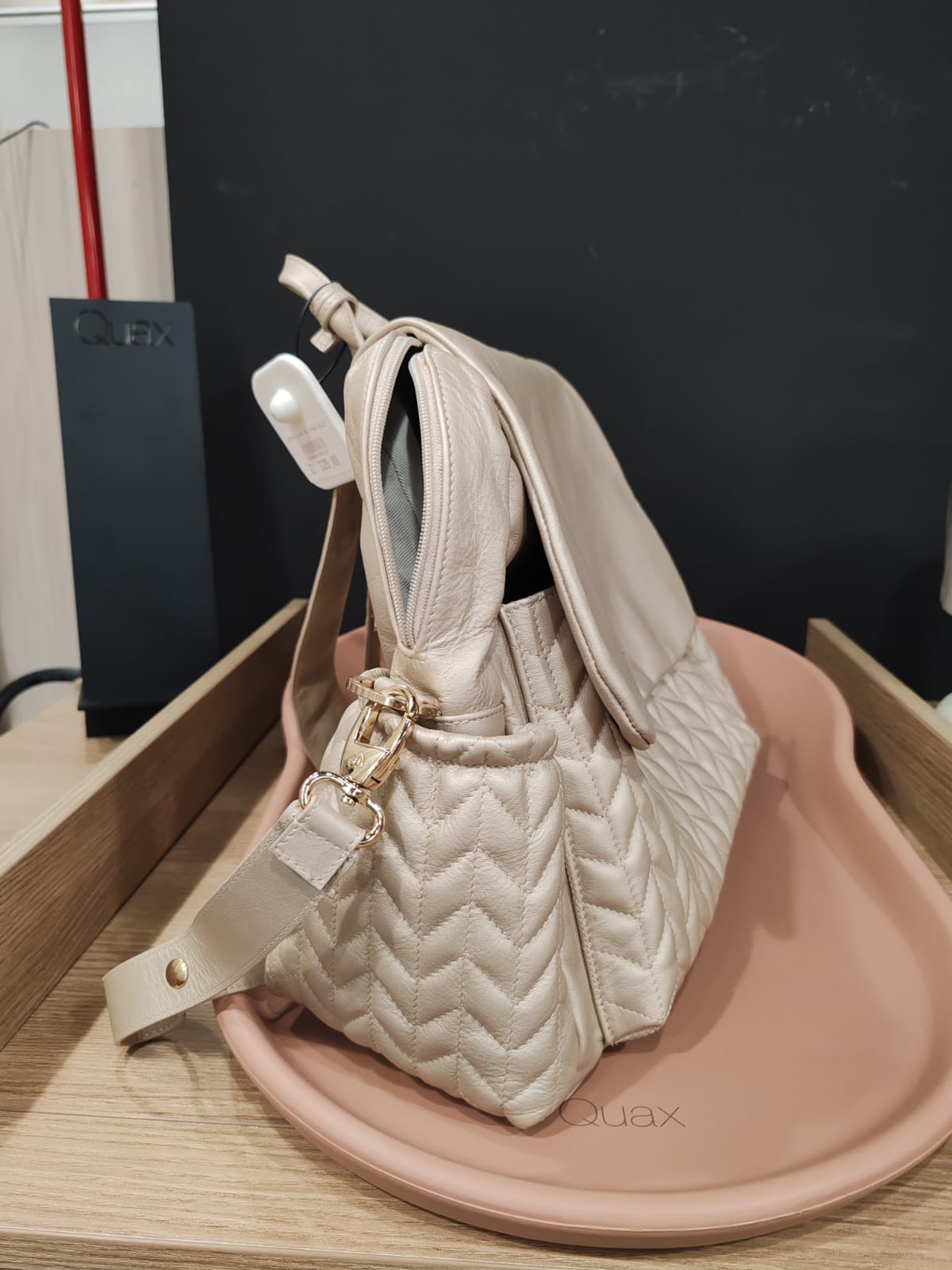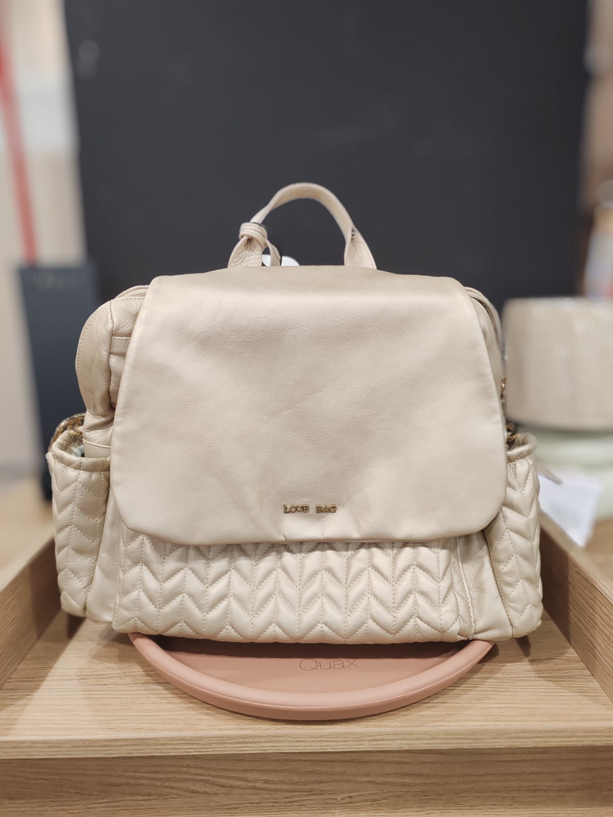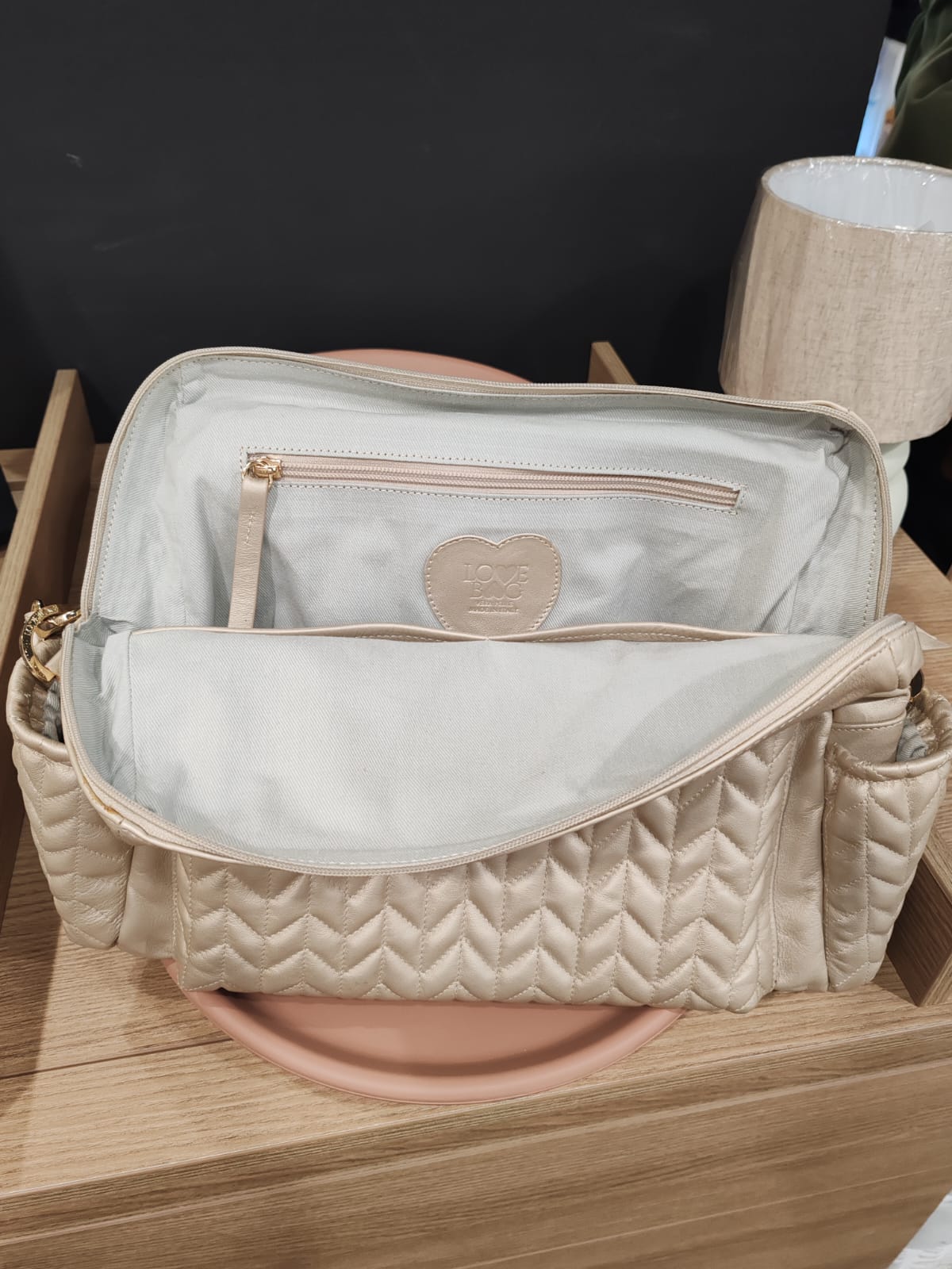 Lo zaino gold Love Bag unisce stile e praticità per la mamma moderna.